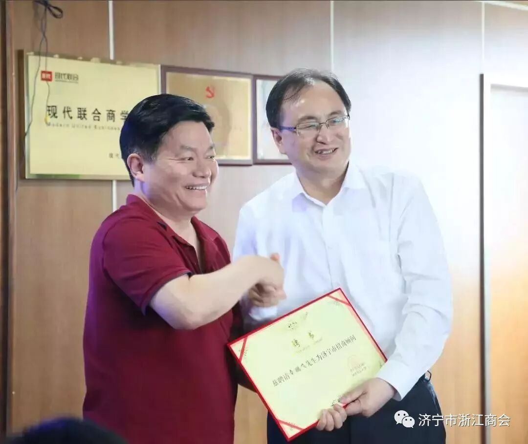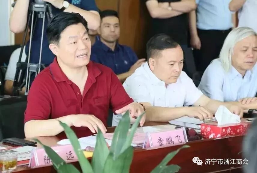 章鹏飞代表山东省浙江商会对济宁各位领导莅临表示由衷的感谢和热烈的欢迎,并简单介绍了山东省浙江商会的基本情况。山东省浙江商会是山东省内第一家异地商会,也是唯一一家被省政府评为优秀社团组织的商会。成立15年来,一直致力于推动鲁浙两省的经济文化交流。近年来,商会与济宁一直保持密切联系,特别是今年,济宁市及各区县先后多次走进杭州组织招商活动,更是把济宁第一个驻杭办放在现代国际大厦。谈到全球浙商走进山东活动,章鹏飞表示,济宁的招商工作做的很到位,与商会紧密对接,推动济宁作为分会场,此举得到了济宁市委市政府的大力支持。接下来,商会将极力推进浙商大厦、浙商总部产业园等项目落户济宁。未来,与济宁的合作将加大加深,将组织邀请浙江商会以外的浙商企业家,加快速度,与济宁精准对接、精准服务。