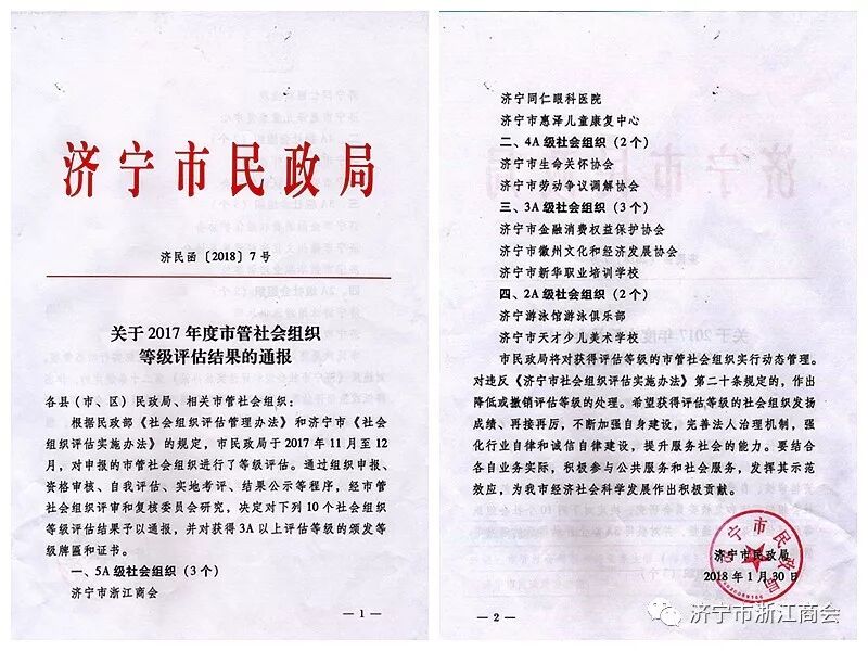 “济宁市首家5A级异地商会”和“济宁市先进社会组织”