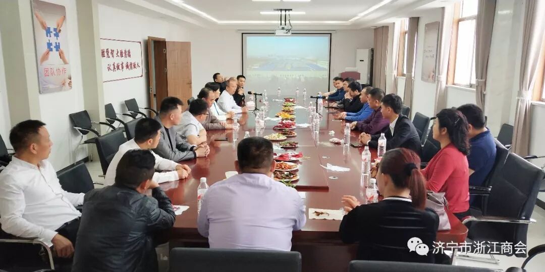 济宁市浙江商会常务副会长、济宁鸿润食品股份有限公司董事长王德定向参会人员介绍企业的发展规划和建设情况。