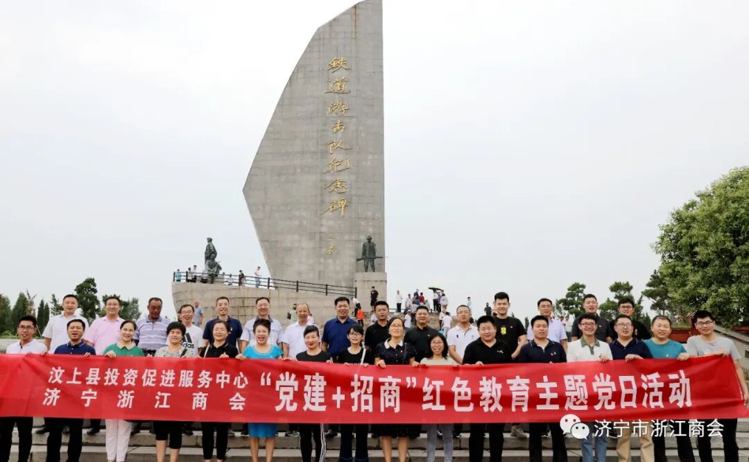 为打造“党建+招商”特色品牌,充分发挥党建引领作用,实现党建工作与招商工作的有机统一,扎实开展以商招商、精准招商,7月26日,汶上县投资促进服务中心组织县产业招商办公室联合济宁市浙江商会赴微山爱国主义教育基地开展“党建+招商”红色教育主题党日活动。